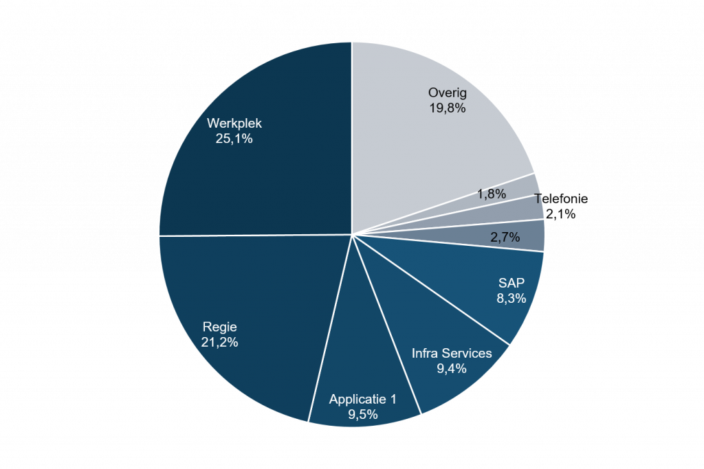 Het datamodel laat ook de verdeling van de kosten over diverse onderdelen in procenten zien. Indien gewenst kan er nader gekeken worden naar de totale kosten van de werkplek om inzicht te krijgen waar deze kosten precies vandaan komen. De oorsprong van deze kosten zijn zover terug te vinden tot op de brondata. Dit noemen wij totale transparantie en dat vindt eV-ict belangrijk.